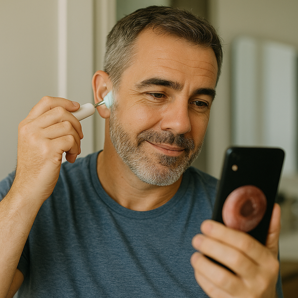 "Con los bastoncillos siempre acababa empujando la cera hacia dentro. Con esto, ves todo en el móvil y limpias de forma segura y precisa".
